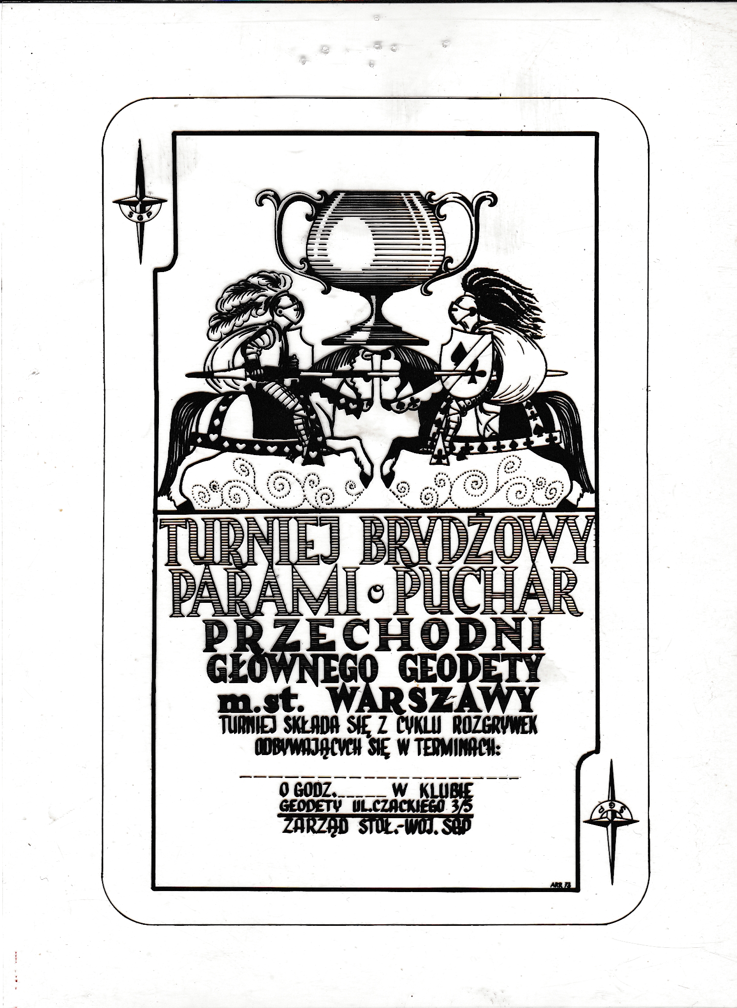 Projekt plakatu turnieju brydżowego z wykorzystaniem motywu karty do gry